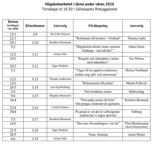 lan för Antroposofi i Järnaområdet samt övriga intresserade: